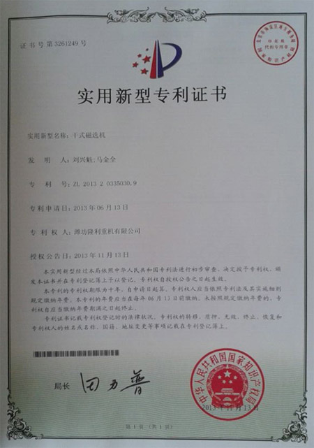 隆利重機是磁分離機、高剪機、脫磁器、除鐵器、磁選機、布袋除塵器、永磁磁選柱、尾礦回收機等